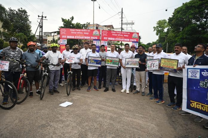 भारत सरकारच्या क्रिडा विभागाच्या व “फिट इंडिया” मोहिमे अंतर्गत आज दिनांक २६ ऑगस्ट, २०२५ रोजी सकाळी ०७:०० वाजता पटेल हायस्कुल समोर श्री छत्रपती शिवाजी महाराज चौक पासुन ते दुर्गापूर रोड- पद्मापुर गेट ते पोलीस सभागृह तुकूम पर्यत सायकलथॉन चे आयोजन करण्यात आले होते. सदर सायकलथॉन जिल्हा पातळीवरील पोलीस अधिकारी व अंमलदार सह पोलीस कुटूंबियांनी सहभाग नोंदविला असुन जिल्हा परिषद चंद्रपूर अंतर्गत माध्यमिक शालेय विद्यार्थी आणि चंद्रपूर शहरातील Go Green Cycle Group चे सदस्यांनी सुध्दा सहभाग नोंदविला आहे.