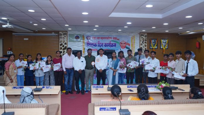 चंद्रपूर 11 सप्टेंबर – मनपा शाळांतील शिक्षकांची जुनी पिढी आता सेवानिवृत्त होत असुन नव्या पिढीवर विद्यार्थ्यांची जबाबदारी आली आहे, जुन्या शिक्षकांचा आदर्श ठेऊन व विद्यार्थ्यांचे सुप्त गुण ओळखुन विद्यार्थ्यांना प्रोत्साहीत करण्याचे काम नव्या पिढीच्या शिक्षकांनी करावे. आज मनपाच्या 26 पैकी 2 शाळा पीएमश्री आहेत,शिक्षक आपल्या प्रयत्नांनी किमान अर्ध्या शाळा तरी पीएमश्री करतील असा आशावाद उपायुक्त मंगेश खवले यांनी राणी हिराई सभागृहात आयोजित शिक्षक दिन समारंभात व्यक्त केला.