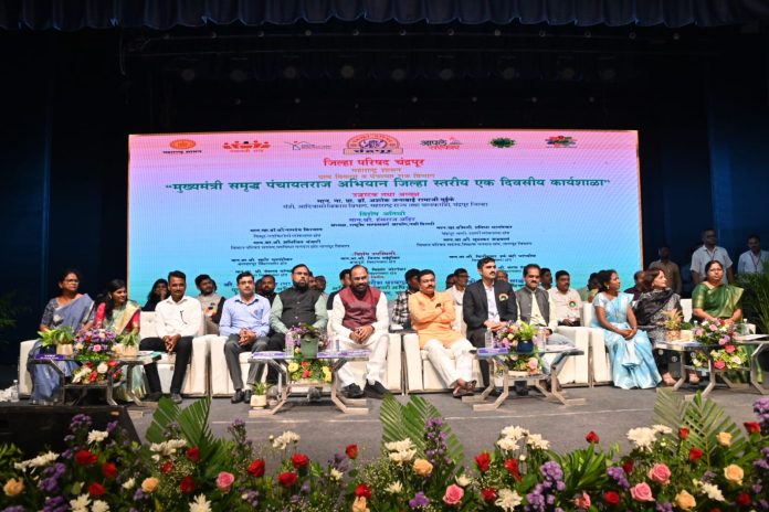 जिल्हा परिषदेच्या वतीने प्रियदर्शिनी इंदिरा गांधी सांस्कृतिक सभागृहात आयोजित मुख्यमंत्री समृध्द पंचायतराज अभियानच्या जिल्हास्तरीय कार्यशाळेचे दूरदृष्यप्रणालीद्वारे उद्घाटन करतांना ते बोलत होते. यावेळी मंचावर आमदार सर्वश्री सुधाकर अडबाले, किशोर जोरगेवार, देवराव भोंगळे, मुख्य कार्यकारी अधिकारी पुलकित सिंह, अतिरिक्त मुख्य कार्यकारी अधिकारी गिरीश धायगुडे, उपमुख्य कार्यकारी अधिकारी मिना साळूंके (पंचायत), नुतन सावंत (सामान्य), शिक्षणाधिकारी (माध्य.) राजेश पाताळे, अश्विनी केळकर (प्राथ्.) मान्याची वाडी गावचे (ता.पाटण, जि. सातारा) सरपंच रविंद्र माने आदी उपस्थित होते.