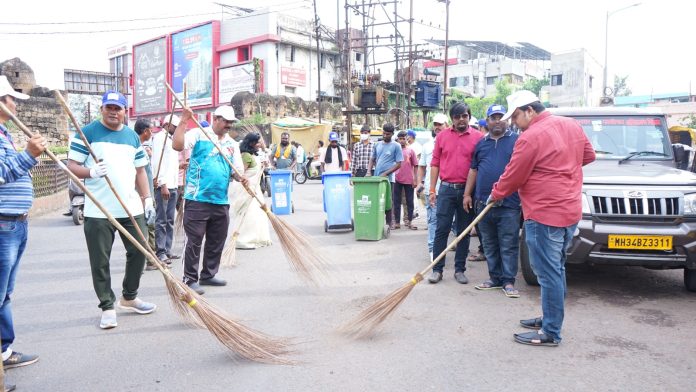 मनपाने राबविले स्वच्छता अभियान – ‘एक दिन, एक घंटा, एक साथ’ श्रमदान – स्वच्छता कर्मचाऱ्यांचा सत्कार
