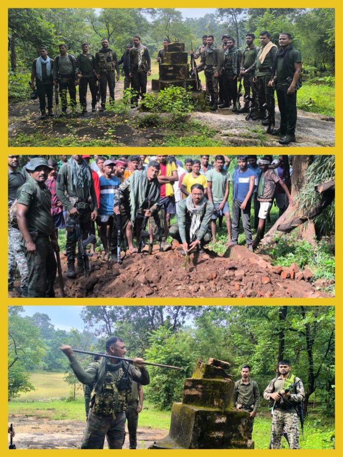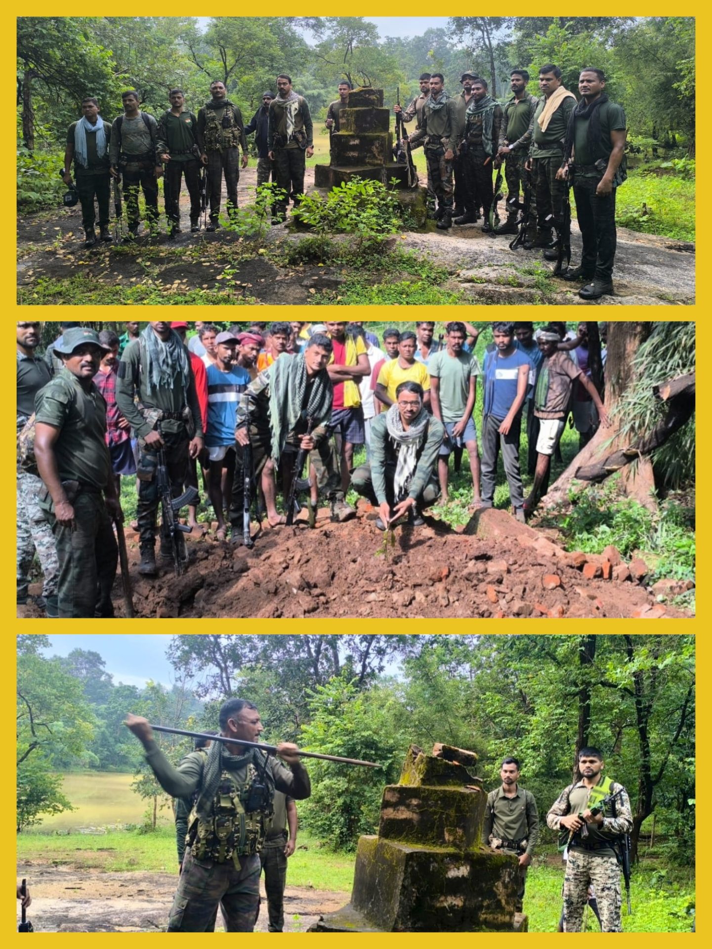 सविस्तर वृत असे आहे की. काल दिनांक ३०/०९/२०२५ रोजी पोस्टे कटेझरी येथील पोलीस पथक आणि एसआरपीएफचे जवान मौजा कटेझरी व मर्मा जंगल परिसरात अभियान राबवित असताना, जंगल परिसर शोध अभियान राबविते वेळी सदर जंगल परिसरात दोन ते तीन वर्ष जुने असलेले माओवाद्यांनी उभारलेले दोन स्मारक दिसून आले. सदर दोन्ही माओवादी स्मारक हे मागील काही वर्षांपासून अस्तित्वात होते. यावरून मा. वरिष्ठांच्या मार्गदर्शनाखाली सदर माओवादी स्मारकांची बिडीडीएस पथकाने तपासणी केल्यानंतर दोन्ही स्मारके पाडून टाकण्यात आले असून ते उध्वस्त करण्यात आले आहेत. तसेच स्थानिक नागरिकांच्या सहकार्याने सदर दोन्ही स्मारक उद्धस्त करण्यात आले असून, त्याठिकाणी शांततेचे प्रतीक म्हणून वृक्षारोपण करण्यात आले आहे.