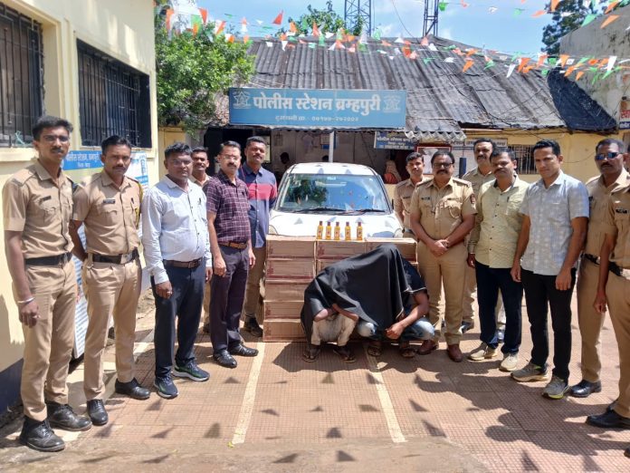 दिनांक २९/०९/२०२५ रोजी ब्रम्हपुरी पोलीसांना गोपनिय बातमीदारा कडुन खात्रीशिर माहिती मिळाली की, ब्रम्हपुरी येथील एक इसम हा नागभीड ते ब्रम्हपुरी रोडनी एक चारचाकी वाहनामध्ये अवैधरित्या दारु बाळगुन वाहतुक करीत आहे. यावरुन ब्रम्हपुरी पोलीसांनी पॉलीटेक्नीक कॉलेज ब्रम्हपुरी रोडवर पोलीस स्टॉफसह नाकाबंदी केली असता स्विफ्ट डिझायर वाहन क्रमांक MH40-Y-6149 हे नागभीड रोड वरुन येत असतांना दिसल्याने त्यास थांबवून त्याची पंचासमक्ष पाहणी केली असता सदर वाहनाच्या डिक्की मध्ये एकुण १५ खर्डाच्या खोक्यामध्ये प्रत्येक खर्डात ४८ नग प्रमाणे एकुण ७२०नग प्रत्येकी १८०एम.एल.च्या दारुचे सिलबंद बाटल्या प्रत्येकी २६०/- रु. प्रमाणे एकुण १,८७, २००/- रुपयाचा माल अवैधरित्या मिळुन आल्याने सदर दारु साठा वाहतुकीकरीता वापरलेला वरील नमुद वाहन किं. ४,६०,०००/- असा एकुण ६,४७, २००/- रुपयाचा माल जप्त करुन आरोपी (१) प्रफुल्ल प्रकाश घरडे वय ३२ वर्ष रा. हनुमान नगर ब्रम्हपुरी (२) अनिल रामभाऊ दांडेकर वय ३० वर्ष रा. हत्तीगोटा ब्रम्हपुरी यांचे विरुध्द कलम ६५ (अ), ८३ महाराष्ट्र दारुबंदी कायदान्वये गुन्हा नोंदविण्यात आला असुन पुढील तपास ब्रम्हपुरी पोलीस करीत आहे.