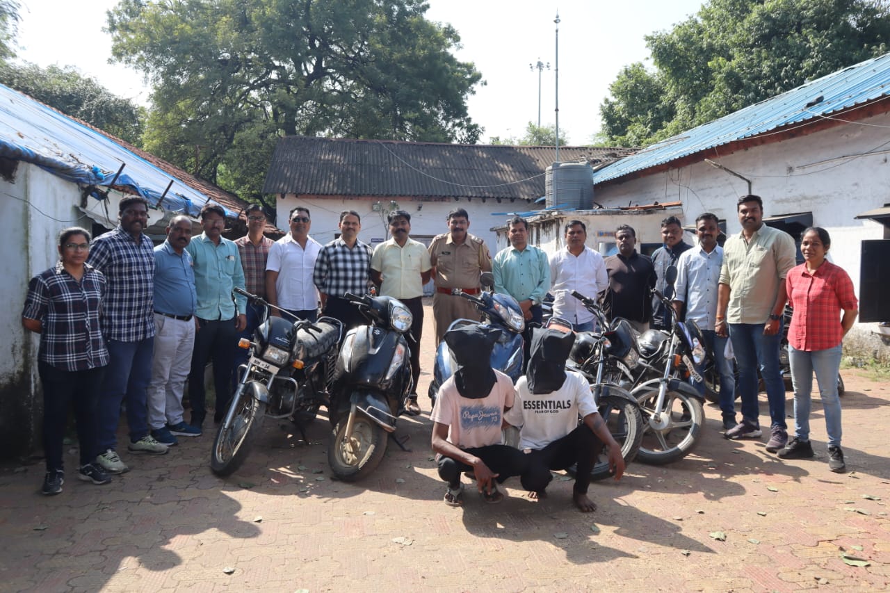 सदर गुन्हयाचे गांभीर्य बघुन वरिष्ठांचे मार्गदर्शनाखाली मा. आशिफ राजा शेख वरिष्ठ पोलीस निरीक्षक पोलीस स्टेशन रामनगर यांचे नेतृत्वात चोरी करणारे ईसम यांचा सि.सि.टि.व्ही. फुटेज चेक करून तसेच गोपनीय यत्रना लावुन सदर आरोपीचा शोध घेत असतांना गोपनीय माहिती मिळली की, यातील आरोपी नामे १) नाव :-गोपाल जिवन मालाकार वय ३० वर्ष धंदा मजुरी रा. शामनगर बंगाली कॅम्प चंद्रपुर., २) नाव:- आशिष उर्फ जल्लाद अक्रम शेख वय २२ वर्ष धंदा मजुरी रा. फुटक नगर एकता नगर चंद्रपुर. यांनी जिल्हा चंद्रपुर तसेच जिल्हा नागपुर येथे मोटर सायकल करून विक्री करीता चंद्रपुर येथे आणले आहे अशा महिती वरून नमुद ईसमास ताब्यात घेवुन त्यांचे कडुन १) सदर गुन्हयातील चोरीचे मोटार सायकल सह अन्य चोरीच्या मो.सा. मिळुन आले ते खालील प्रमाणे.