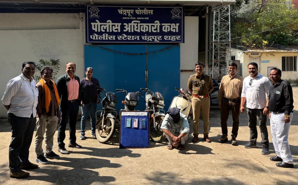 १) पोलीस स्टेशन, चंद्रपुर शहर येथे दि. ११/०७/२०२५ रोजी फिर्यादी हे आपले पत्नीसोबत मोबाईलवर बोलत असताना कोणीतरी मागुन पांढऱ्या रंगाची मोपेड स्कुटीवर अनोळखी ईसम हा फिर्यादीचे समोर येवुन आपली गाडी आडवी थांबवुन फिर्यादीचे हातातील Vivo कंपणीचा मोबाईल कि. ७००० रू. चा जबरीने हिसकावुन घेवुन पांढऱ्या रंगाच्या स्कुटीने भरधाव वेगाने पळुन गेला. अशा फिर्यादीचे रिपोर्ट वरून अप.क. ४७३/२५ क. ३०९ (४) बि.एन.एस. अन्वये गुन्हा नोंद करून तपासात घेतला.