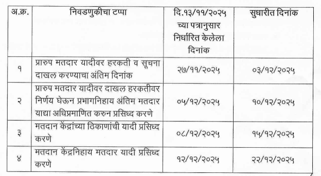निवडणूक कार्यक्रमातील सुधारित टप्पे पुढीलप्रमाणे :