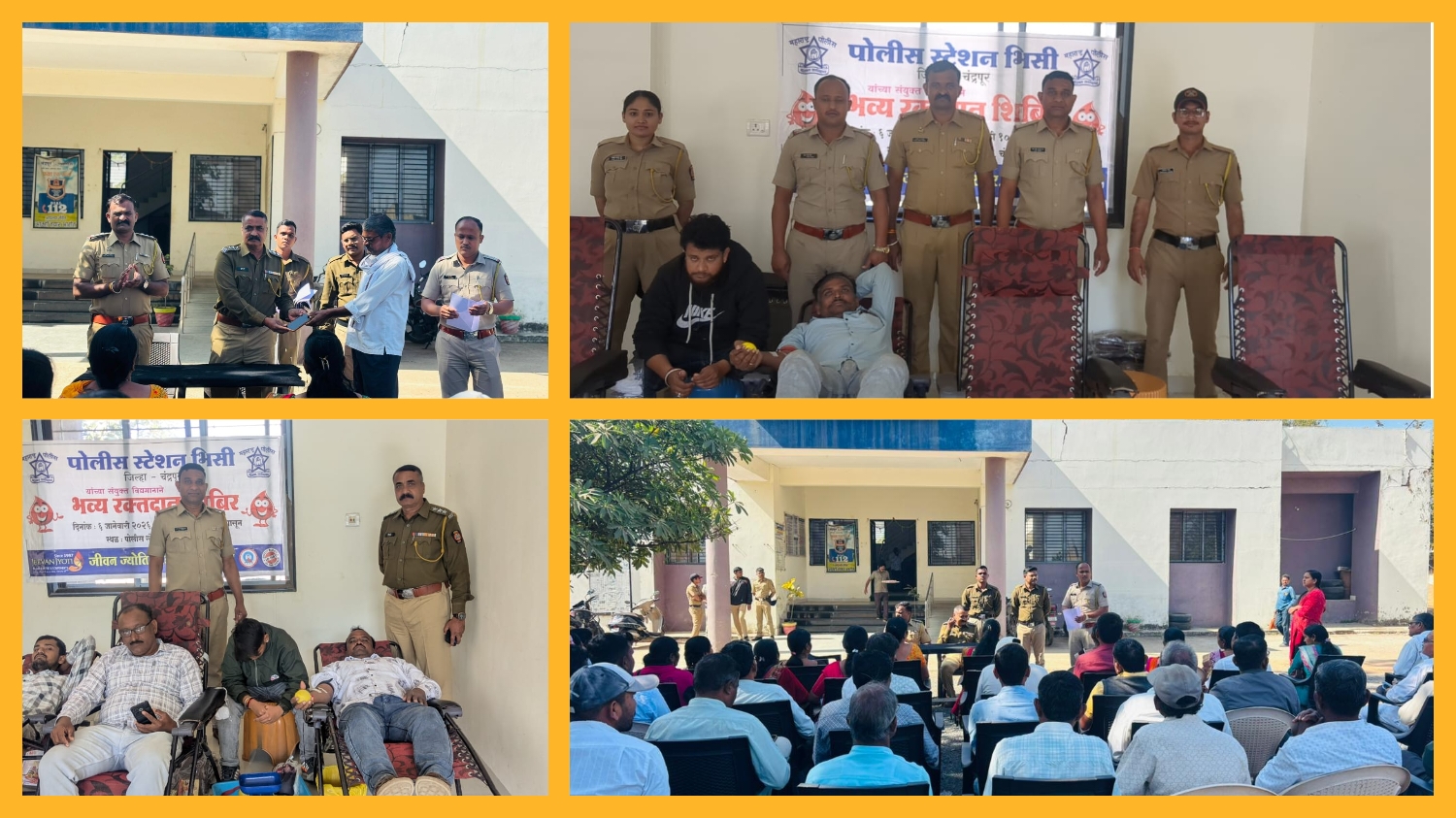 दि. ०६/०१/२०२६ रोजी पोलीस स्टेशन चे आवारात जिवनज्योती ब्लॅड बैंक नागपुर यांचेकडुन रक्तदान शिबिराचे आयोजन करुन, पोलीस स्टेशनचे अधिकारी/अंमलदार, पोलीस पाटील, होमगार्ड व नागरीकांनी रक्तदान करुन पोलीस स्थापना दिवस साजरा करण्यात महत्वाचा वाटा उचलला. पोलीस पाटील, होमगार्ड, व नागरीकांना पो.स्टे. चे कामकाज, सायबर गुन्हे, नविन अंमलात आलेले कायदे, वाहतुक नियम व सुरक्षा, लैंगिक अत्याचार संबंधी गुन्हे, याबाबत मार्गदर्शन करण्यात आले. पो.स्टे. हद्दीत गहाळ झालेले एकुण ११ मोबाईल फोन चा शोध घेऊन ११ मोबाईल मुळ मालकांचे स्वाधिन करण्यात आले. भिसी पोलीसांनी पोलीस स्थापना दिवसानिमीत्य (रायझिंग डे) राबविलेल्या स्पर्धा, जनजागृती, मार्गदर्शन बद्दल पोलीस स्टेशन हद्दीतील नागरीकांनी पोलीसांचे आभार मानले.
