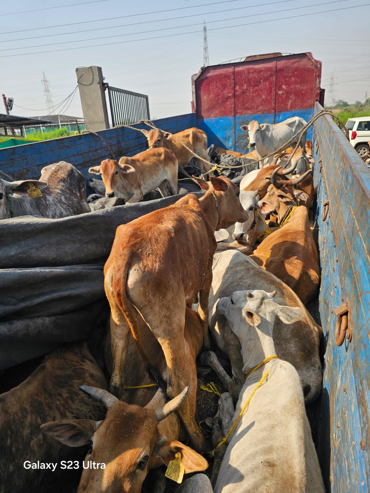 ३) २७ नग पांढ-या व कथ्या रंगाचे अंदाजे वय ८ ते १२ वर्षाचे गोवंश (गाय-१७ व बैल-१०) प्रत्येकी किमंत २०,०००/- रु. प्रमाणे असलेले किमंत ५,४०,०००/- रु.